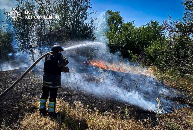 Також, у місті Херсон, ворог за допомогою дрона атакував газову колонку на АЗС, внаслідок чого спалахнула пожежа.Ще шість пожеж в екосистемах ліквідовано пожежно-рятувальними підрозділами у взаємодії з місцевою пожежною охороною. Загальна площа гасіння — понад 8,5 га.