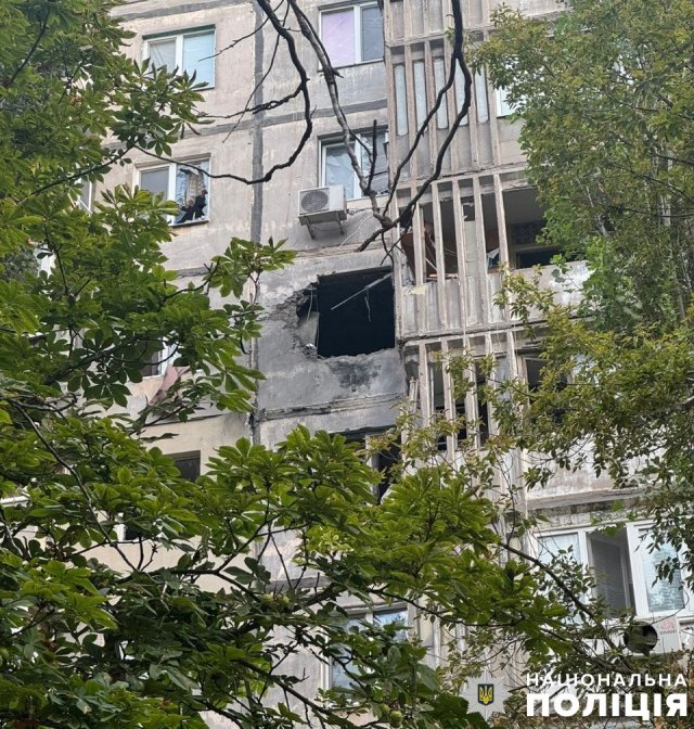 У Дніпровському районі через скидання боєприпасів із ворожих безпілотників пошкоджено службовий автомобіль поліції та п’ять цивільних автівок. Артилерійським вогнем у цьому ж районі пошкоджено багатоповерховий та дев’ять приватних будинків.