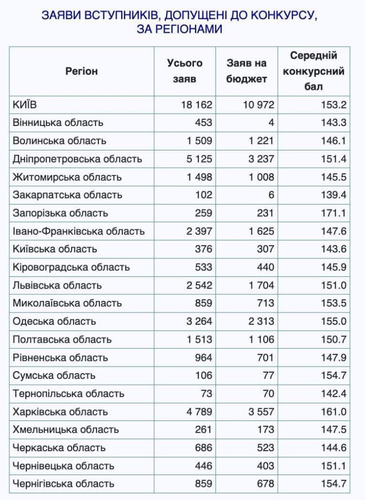 Натомість вступникам пропонують обирати в переліку ті області, куди тимчасово переїхали херсонські університети.