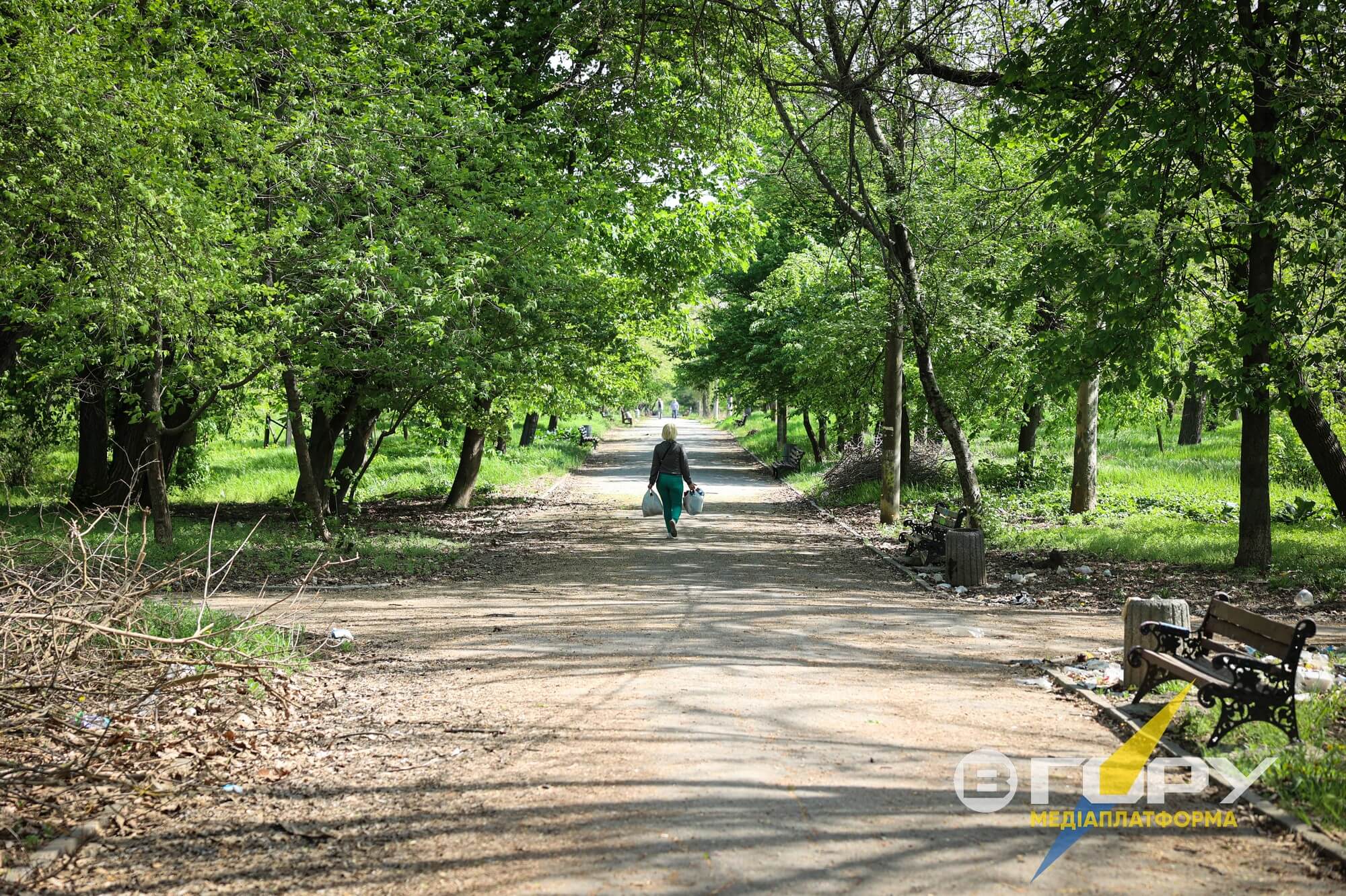 Нечисленні херсонці, яких зрідка зустрічаєш тут, здебільшого перехожі, вони йдуть через парк у своїх справах.