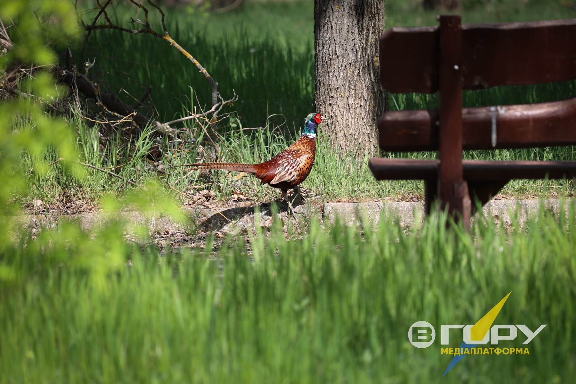 Парк став домівкою для фазанів. Як вони потрапили сюди, — ніхто поки що не може сказати.