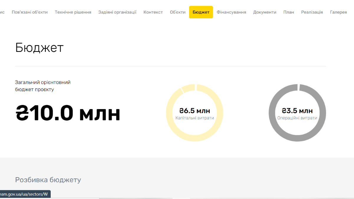 Запланований бюджет проєкту становить 10 мільйонів гривень, з яких 6,5 мільйона — це капітальні витрати.