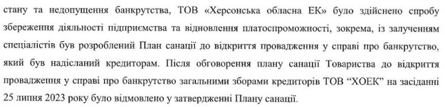 ХОЕК звернулась до суду, бо кредитори не погодили їй план санації – заходів для запобігання банкрутства та фінансового оздоровлення.