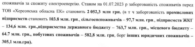Станом на 1 липня, ХОЕК недоотримала 2 мільярди 52 мільйони 300 тисяч гривень платежів за постачання електроенергії.