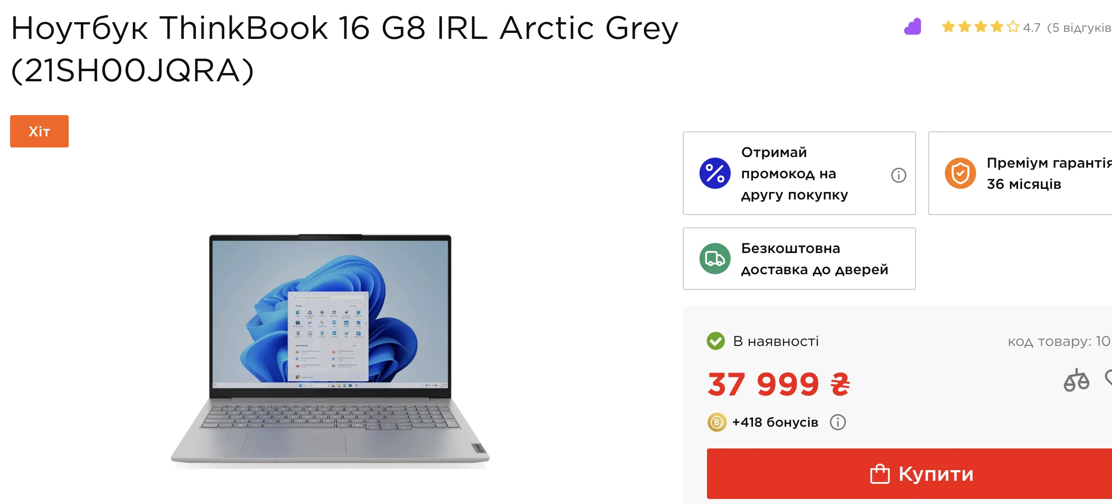 Зазначимо, що на офіційному сайті Lenovo ціна на аналогічну модель ноутбуків на 4,8 тис. грн вища, ніж у Сопільняк.