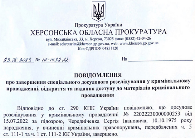 Херсонська СБУ завершила розслідування щодо зрадника Сергія Чередніченка