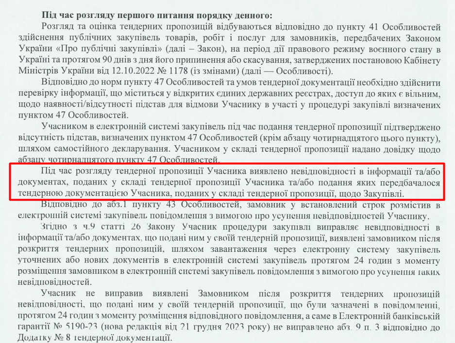 Відповідно до розслідування Харківського антикорупційного центру, Служба відновлення та розвитку інфраструктури в Харківській області відхилила пропозицію ТОВ «Спецтермомонтаж-Енерго» у тендері на аварійно-відновлювальні роботи на Харківщині: у компанії виявили невідповідності в документах і зауважили на необхідності усунення цих невідповідностей. Проте компанія цього так і не зробила. Йдеться про грудень 2023 року.