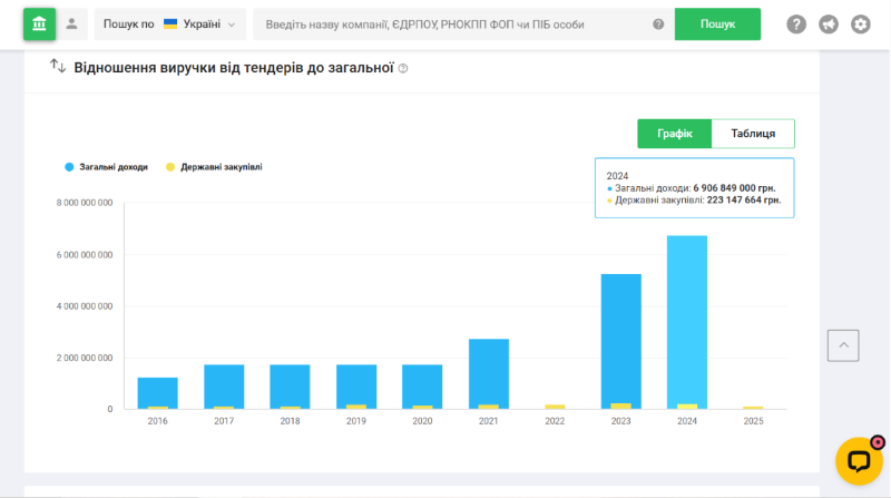 Скриншот: ProzorroФірма отримала понад 1,7 мільярда гривень через державні закупівлі, зокрема в комунальних установах, школах, лікарнях та сільрадах. Зокрема, "Кворум-Нафта" постачає газ і пальне, і у 2024 році її річний дохід перевищив 7 мільярдів гривень.