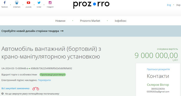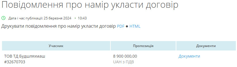 Про це свідчать угода і тендер з системи держзакупівель Prozorro.