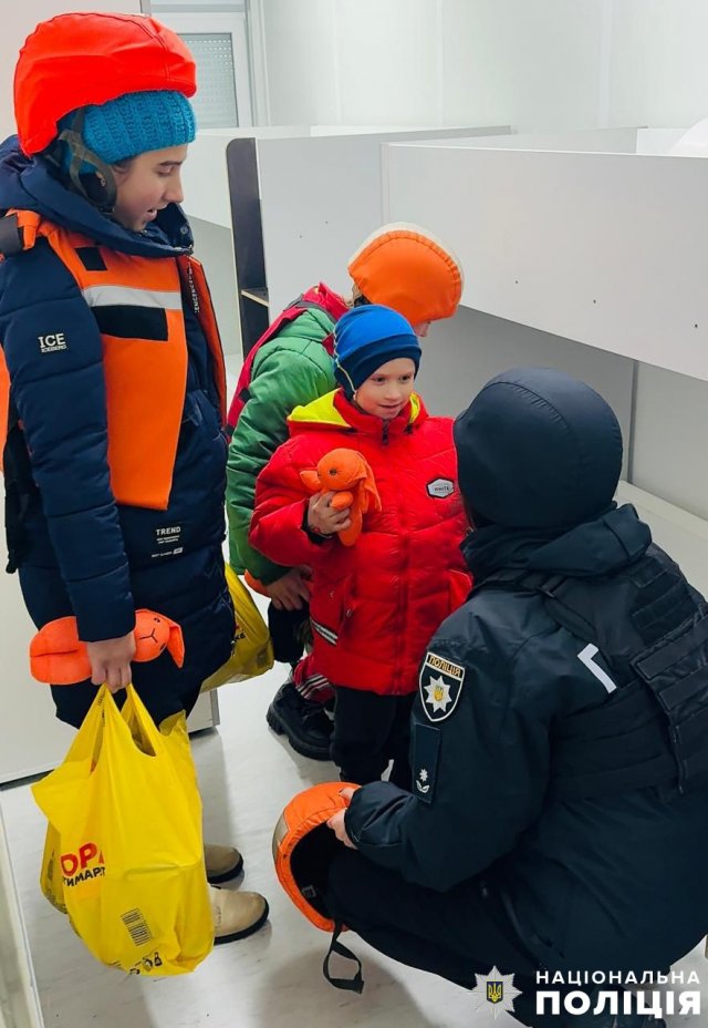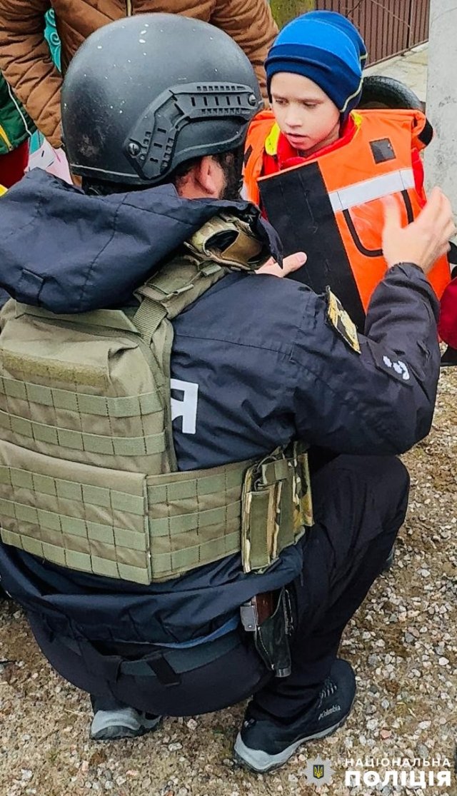 Поліцейські розробили план евакуації та, вибравши безпечний час між російськими обстрілами, приїхали на допомогу родині. Правоохоронці одягнули на всіх дітей засоби індивідуального захисту (спеціальні бронежилети та шоломи) та на броньованому автомобілі швидко вивезли всю сім’ю до безпечного місця. А щоб дівчатка та хлопчик могли у найкоротший термін адаптуватися в новій оселі, працівниця ювенальної превенції подарувала їм іграшки – зайчиків-охоронців.