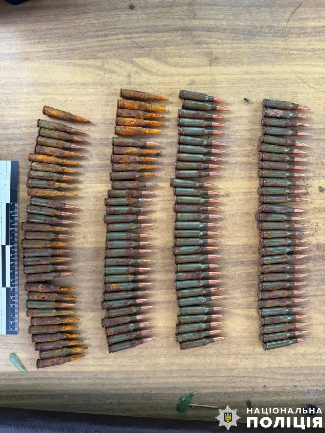 Під час проведення стабілізаційних заходів за місцем проживання 41-річного чоловіка правоохоронці виявили корпус гранати РГД-5 із запалом, два корпуси гранат РГН-254 із запалами та понад 120 патронів калібру 5,45 мм.
