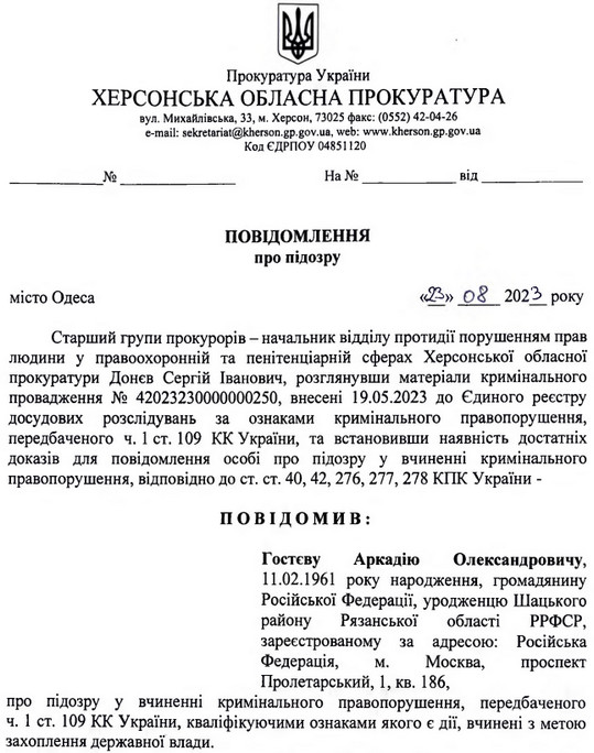 Про це свідчить відповідний документ з сайту Офісу Генерального прокурора.