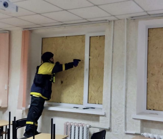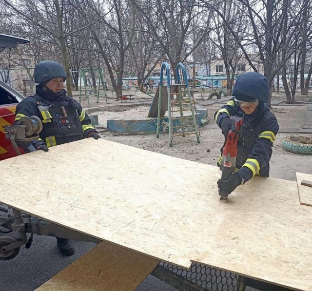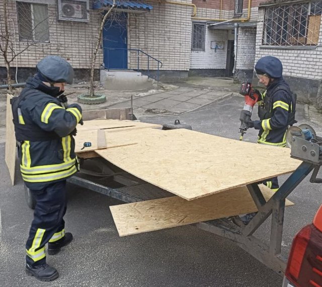 Надзвичайники лагодять дахи та забивають вікна фанерними щитами. Лише протягом минулої доби у Херсоні було зашито 72 вікна в житлових будинках.Про це повідомляє пресслужба ДСНС Херсонської області.