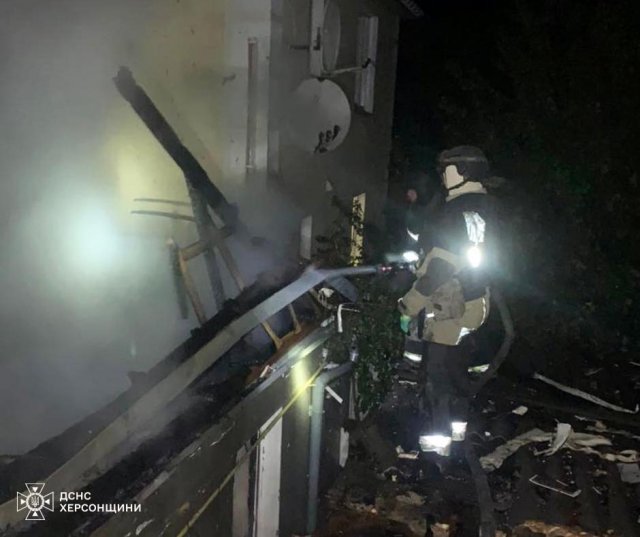 Вже вночі окупанти завдали удару по житловому будинку в одному з мікрорайонів м.Херсон. Пожежу ліквідовано на площі 60 кв.м.