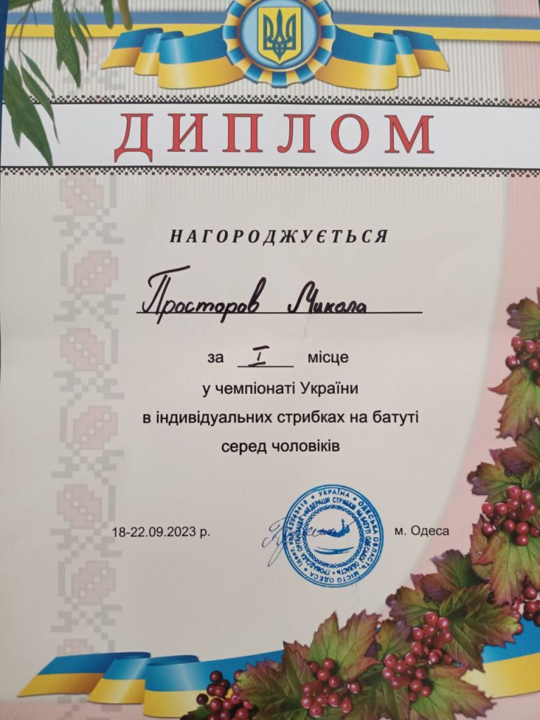 Відомо, що спортсмен отримав нагороду в індивідуальних стрибках.