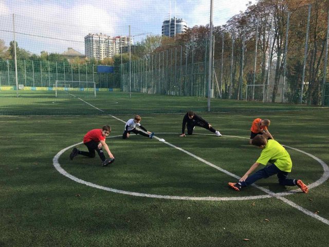 Херсонський гуманітарний хаб допомоги у Києві організував тренування маленьких футболістів з Херсонщинина на базі УАФ