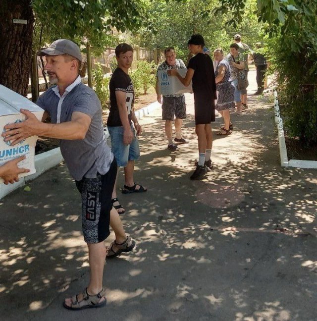 До розвантаження вантажу долучилося близько 30 волонтерів з числа тимчасово переміщених жителів Херсонщини. Дякуємо за допомогу!