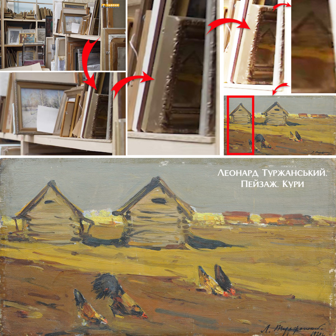 “Минулорічне відео, оприлюднене окупантським телеканалом у серпні 2023 року, дозволило впізнати ще одну вкрадену росіянами картину. До цього кадру сюжету, знятого в Криму, в імпровізованому сховищі Центрального музею Тавриди, ми зверталися неодноразово і раніше вже знаходили на ньому твори, незаконно вивезені з Херсонського художнього музею. Зараз вдалося “пролити світло” на ще одну невеличку роботу — в поле зору давно потрапив її погано освітлений фрагмент, нарешті нам вдалось відкинути усі сумніви та ідентифікувати картину”, - йдеться в дописі.
