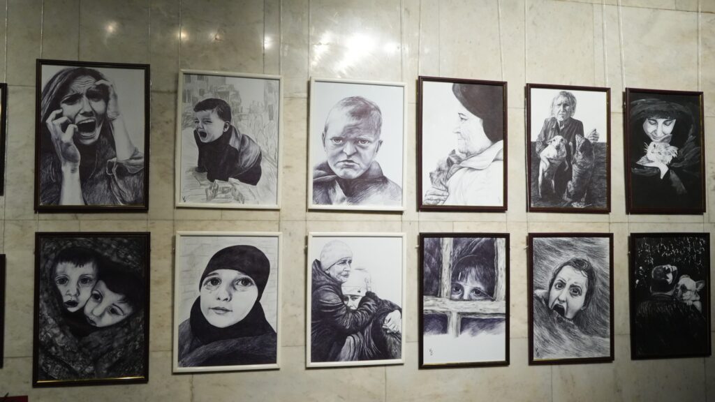 Тамара Качаленко. Графічна серія «Обличчя війни». 2024. Папір, кулькова ручка.
