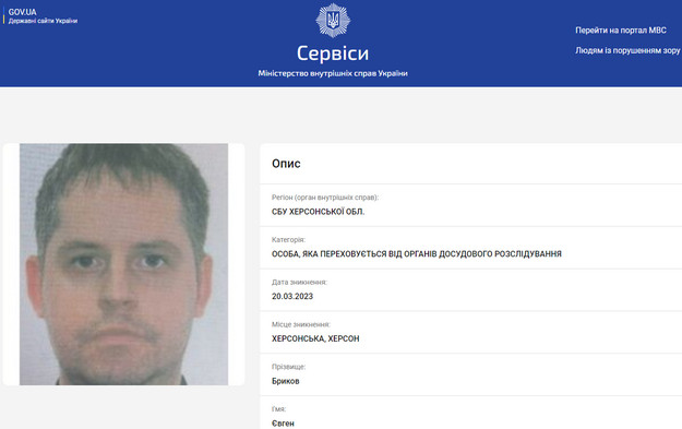 Херсонський колаборант Євген Бриков потрапив у розшукову базу МВС