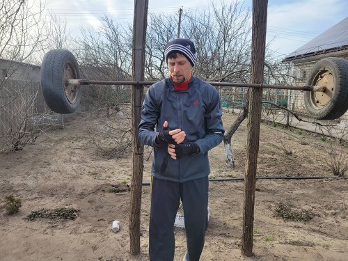 «Тесть мені допоміг зробити інвентар з того, що в нього було. Він займався сільським господарством, тож у нього були колеса, труби. Я зробив стійки із стовбурів дерев. На трубу ми вдягали різні колеса, регулюючи вагу – від 18 кілограмів до приблизно 72-х. Ще були такі дуги, які використовують для посадки городини під плівку, то із них я робив бар’єри – просто втикав їх у землю і бігав», – розповів Андрій Проценко – багаторазовий призер чемпіонатів світу та Європи, фіналіст Олімпійських ігор 2012 та 2016 року.