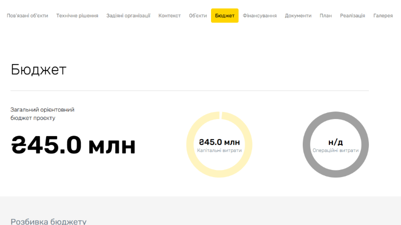 Загальний орієнтовний бюджет проєкту складає 45 мільйонів гривень, але фінансування наразі не підтверджено.