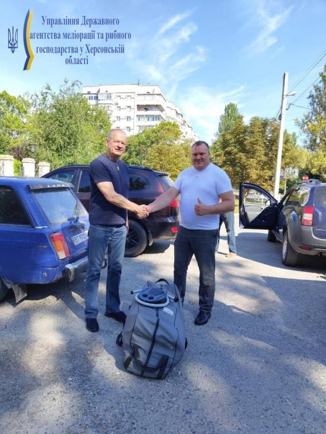В умовах військового стану, як ніколи, особливої актуальності набирає ефективне співробітництво та взаємодопомога між Херсонським рибоохоронним патрулем та Управлінням Держпродспоживслужби у Херсонській області, забезпечення якої, дозволить «тримати стрій», у такий не легкий для всіх час.На знак конструктивної співпраці начальник Управління Державного агентства меліорації та рибного господарства у Херсонській області Володимир Кучер передав в.о. начальника Головного управління Держпродспоживслужби в Херсонській області Шапран Ігорю комплекти бронежилетів, які стануть у нагоді працівникам обох управлінь під час проведення спільних заходів по відпрацюванню ринків та місць стихійної торгівлі у м. Херсоні та області щодо незаконної реалізації водних біоресурсів. Також, з метою поліпшення матеріального стану Херсонському рибоохоронному патрулю переданий гумовий човен, який використовуватиметься рибпатрульними під час рибоохоронних рейдів на водоймах Херсонщини.