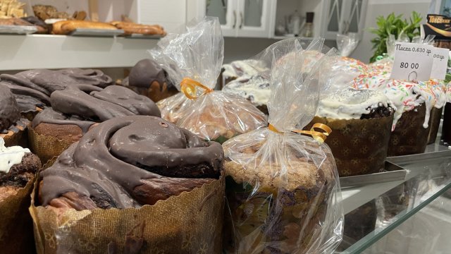Ціна на великодню випічку стартує від 20 гривень, розповідає продавчиня Вікторія."Рулети є у нас з маком, абрикосом, з вишнею. Є рулети по 70 гривень, паски — по 40-60-80 — це якщо найбільша", — розповіла продавчиня.