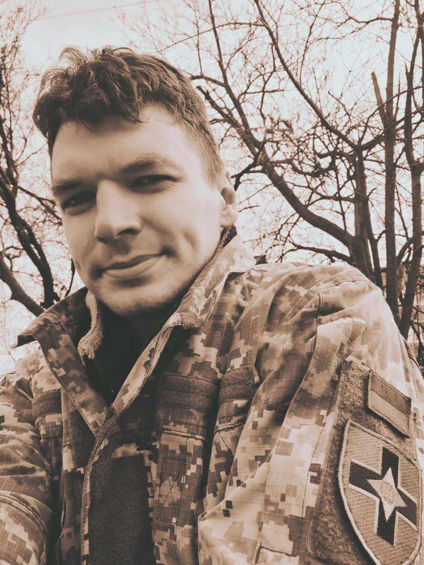 Війна застала Євгена в Києві, він поїхав влаштуватися ландшафтним дизайнером і не планував надовго затримуватися в столиці. Одразу взяв до рук зброю і пішов в ТРО. Їх готували їхати до Бучі, але туди взяли більш досвідчених. Задачею тих, хто залишився, була охорона КМДА.