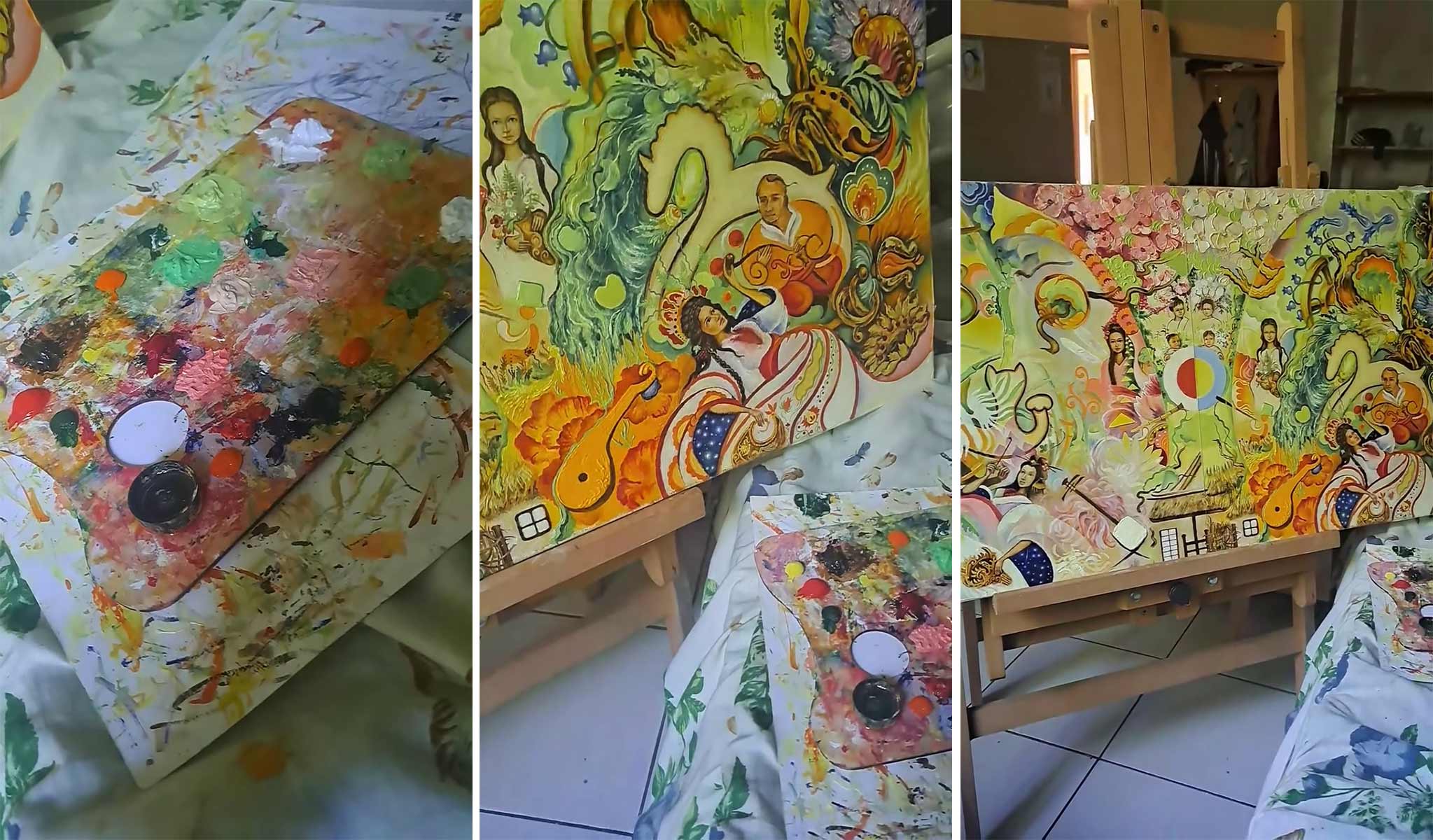 Картина «Україна – Японія» в процесі написання. Стоп-кадри з відео Євгена Ситнікова / Facebook