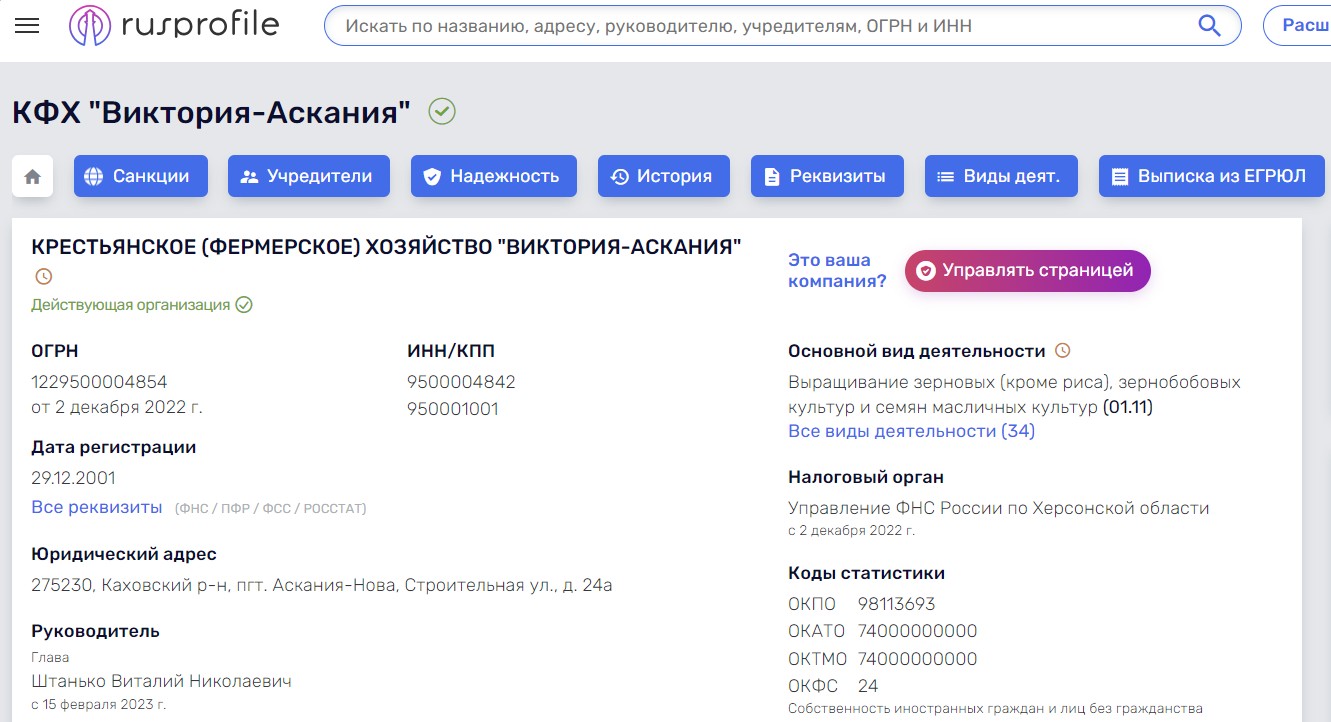 Скріншот із російського сайту rusprofile.ru