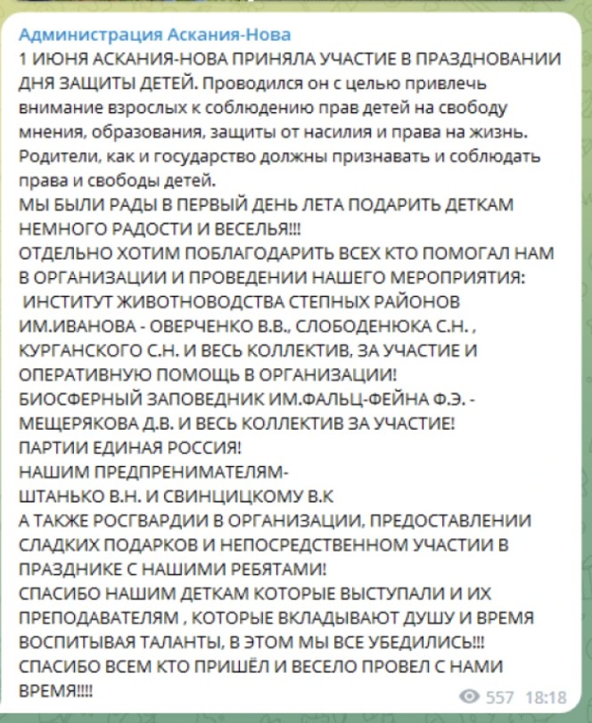 Обидва зрадники з Асканійської громади допомагають окупантам проводити пропагандистські заходи на території Асканії-Нова та навколишніх сіл, про що свідчать публічні подяки їм від імені загарбників. Так, 1 червня цього року окупаційна адміністрація селища подякувала Свінціцькому та Штаньку за допомогу в проведенні пропагандистського заходу з нагоди дня захисту дітей в Асканії-Нова.Подяка від окупаційної адміністрації Асканії-Нова колаборантам Штаньку й Свінціцькому