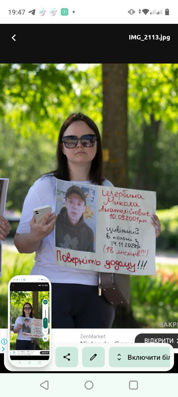 Третій рік поспіль Валентина Щербина бачить свою дитину лише на фото, яке розміщене на стіні у їхньому будинку. Щодня розмовляє із Миколкою, але не чує від нього відповіді. З квітня 2022 року чоловік знаходиться у російському полоні. Родина бранця Кремля вимушена була виїхати із рідного Дніпровського та живе сьогодні у Приозерному.