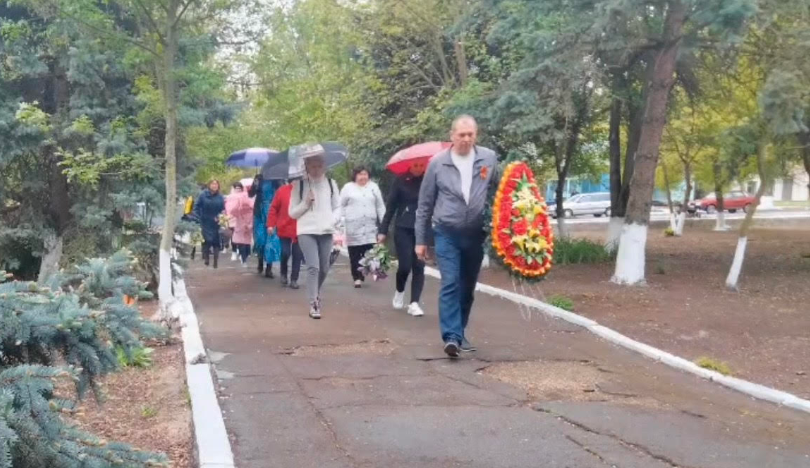Олександр Сторчак (попереду) на організованих окупантами заходах до «Дня Побєди», 09.05.2023. Фото: окупаційний тг-канал