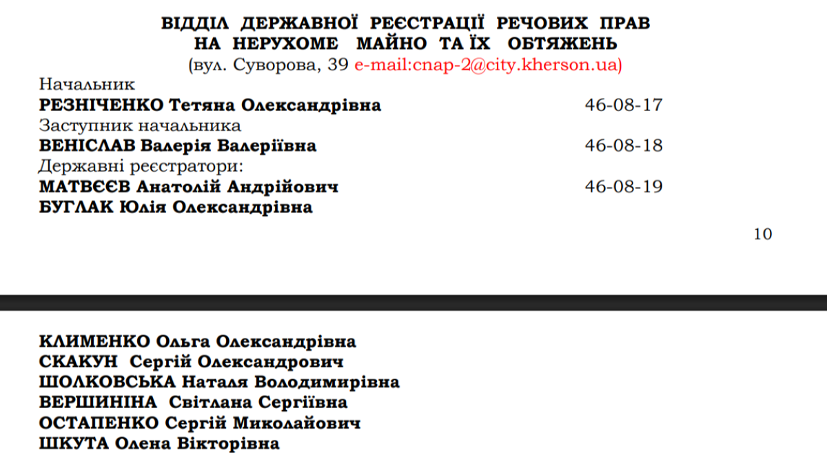 - Вершиніна брала участь у формуванні списків місцевих працівників, яких окупанти використовували у своїй адміністративній структурі.