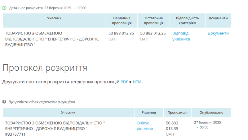 Скриншот: ProzorroЗгідно з аналітичним сервісом YouControl, компанія "Енергетично-дорожнє будівництво" була заснована у 2005 році, а її статутний капітал становить 1,8 мільйона гривень. Основний вид діяльності – виробництво бетонних конструкцій для будівництва. Фірма має тісні зв’язки з приватним підприємством "Лайф сервіс" та консорціумом "Євротунельбуд", а також фігурує у 13 журналістських розслідуваннях.