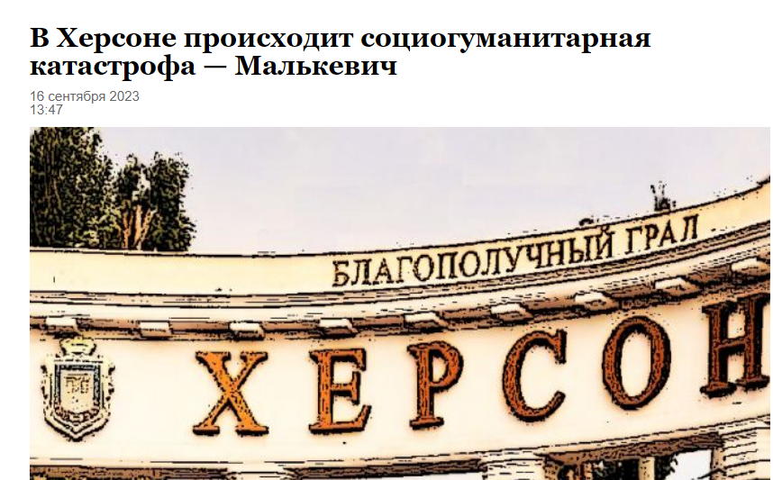 За його словами, у Херсоні не лише “гуманітарна катастрофа”, а й “соціогуманітарна”, що б це не означало. На противагу цьому, Малькевич розповідає про “щастя та відновлення” на окупованих росіянами територіях області.