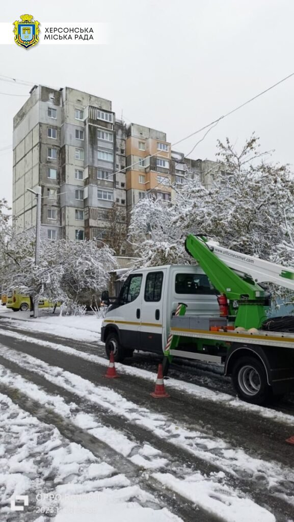 КП «Херсонміськсвітло» відновило повітряні лінії зовнішнього освітлення після падіння дерев