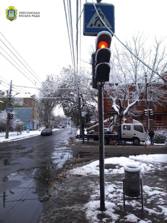В роботах було задіяно 12 робітників (3 бригади) та 5 транспортних засобів КП «Херсонміськсвітло».