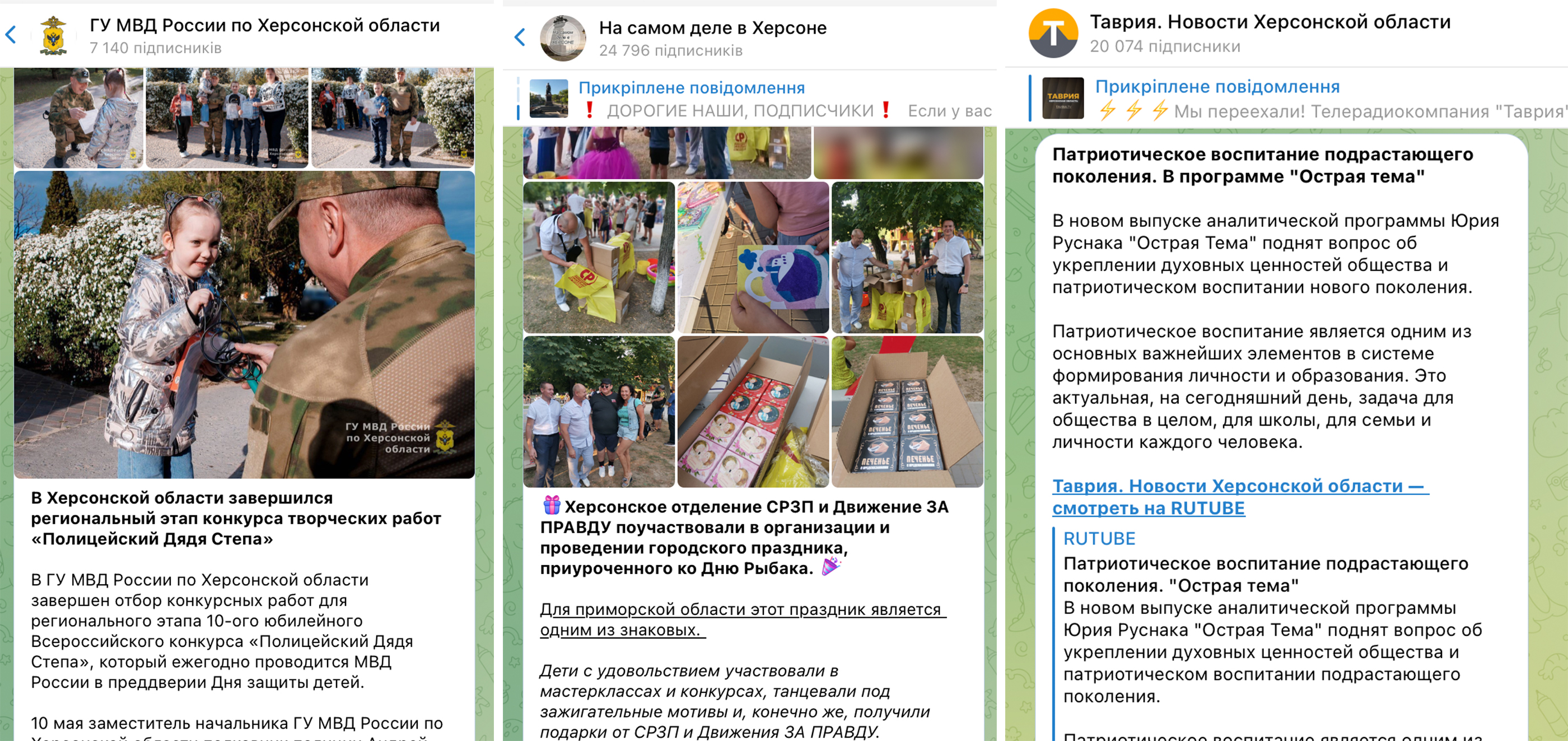 Діти – це улюблена цільова аудиторія російських пропагандистів. Усі гілки окупаційної влади, а також політичні сили намагаються використати українських дітей і заради красивої картинки “спокійного життя”, і для того, аби вплинути на них самих та їхніх батьків (ця політика апробована ще за часів Радянського Союзу). Для цього проводять різні події, орієнтовані на дітей, про які потім розповідають окупаційні медіа.
