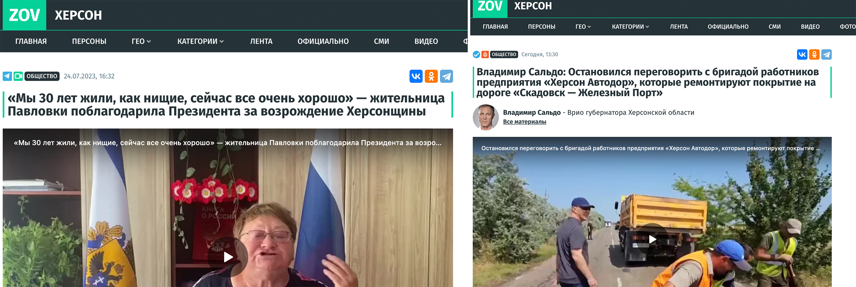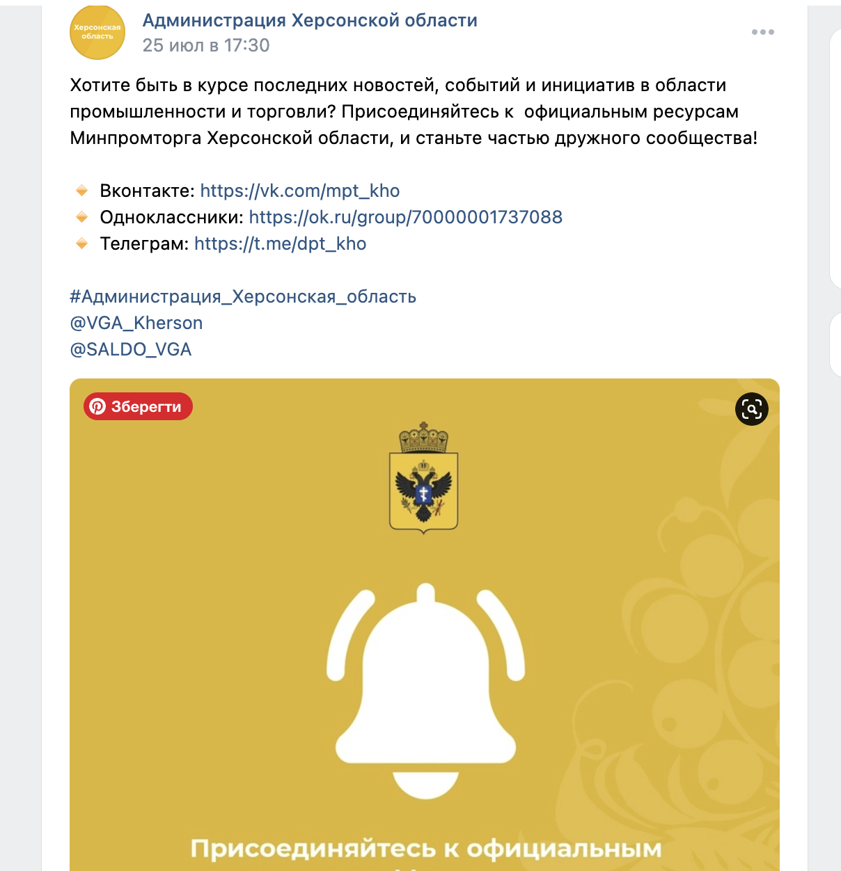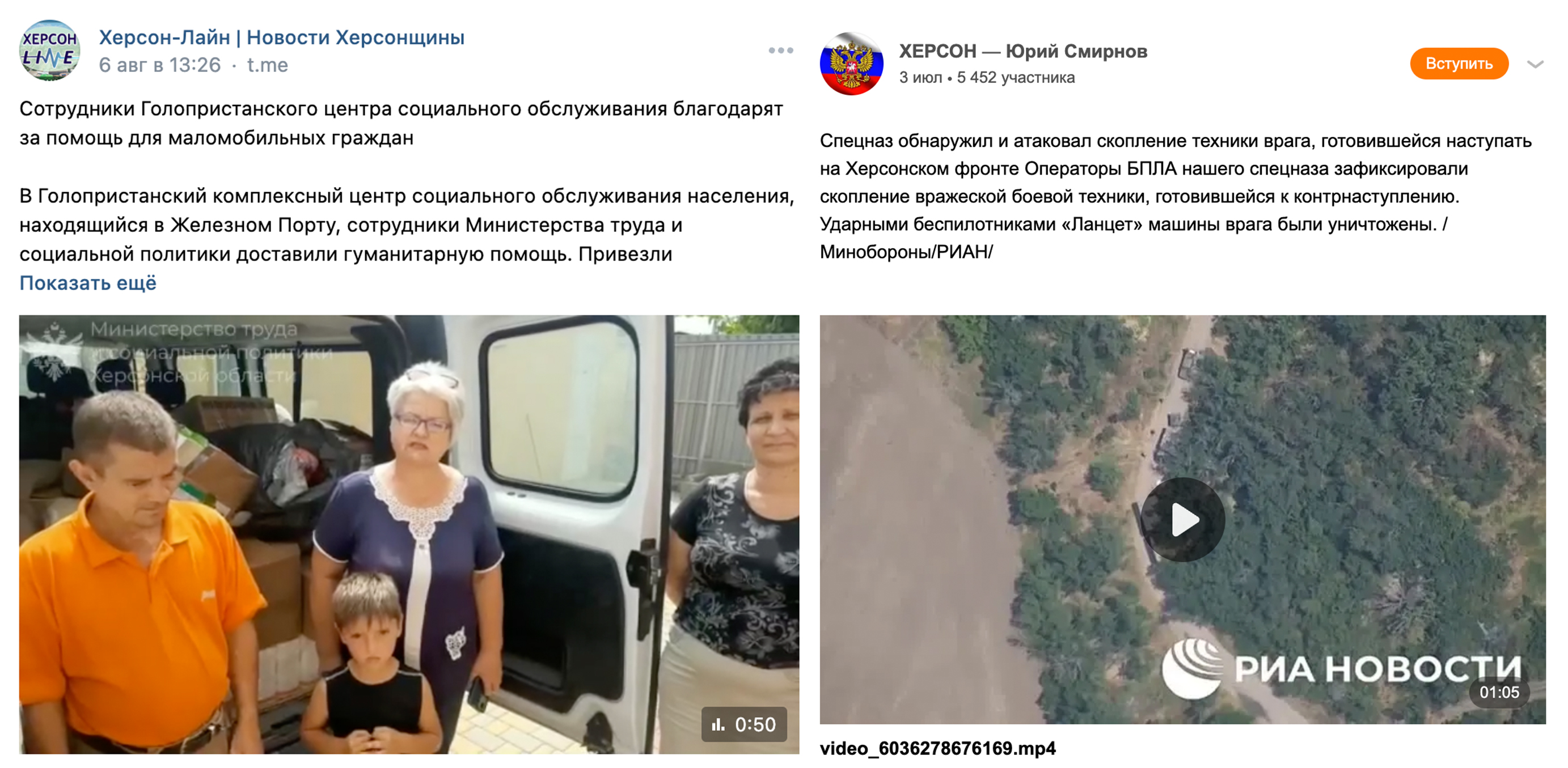Контент окупаційних телеграм-каналів і органів окупаційної влади дублюється у ВК та Однокласники. Російська окупаційна влада намагається популяризувати серед населення захоплених територій заборонений на території України ВКонтакте, де немає українського контенту.