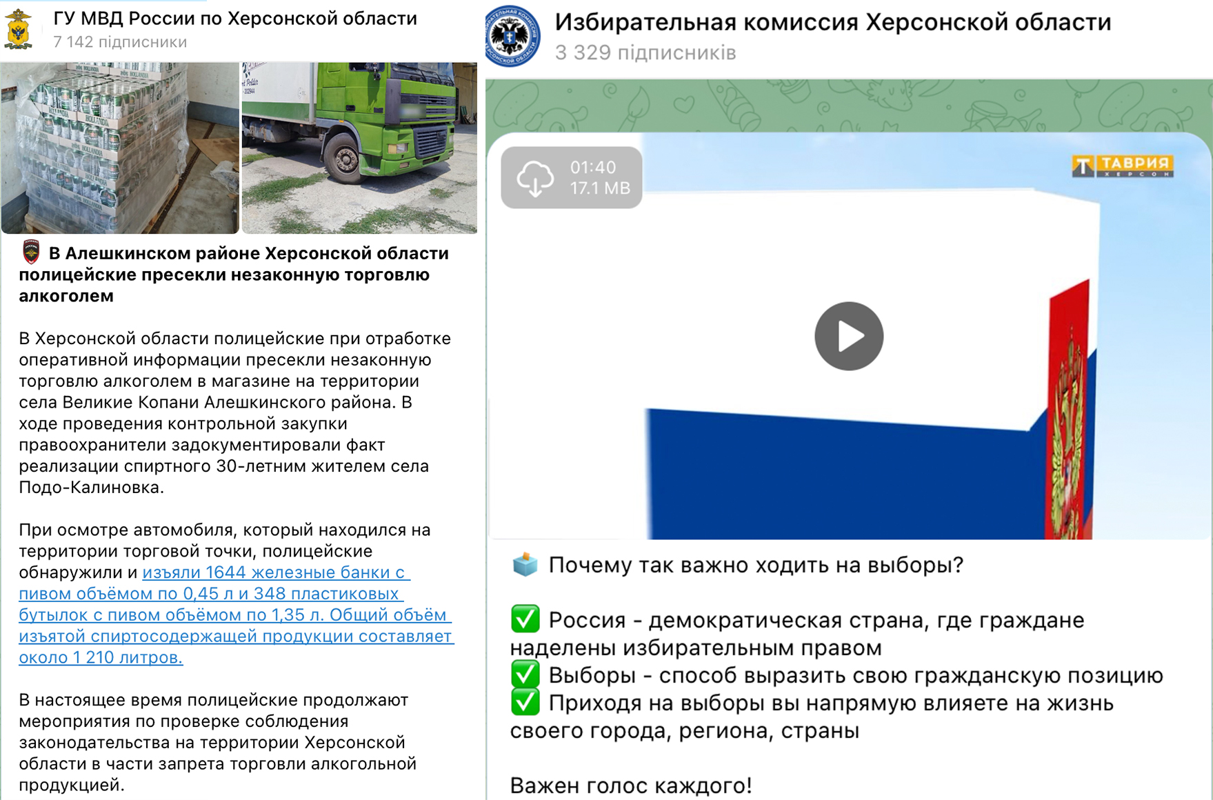 Російська окупаційна влада для поширення своїх меседжів також створила акаунти всіх власних гілок влади (наприклад, окупаційної поліції).
