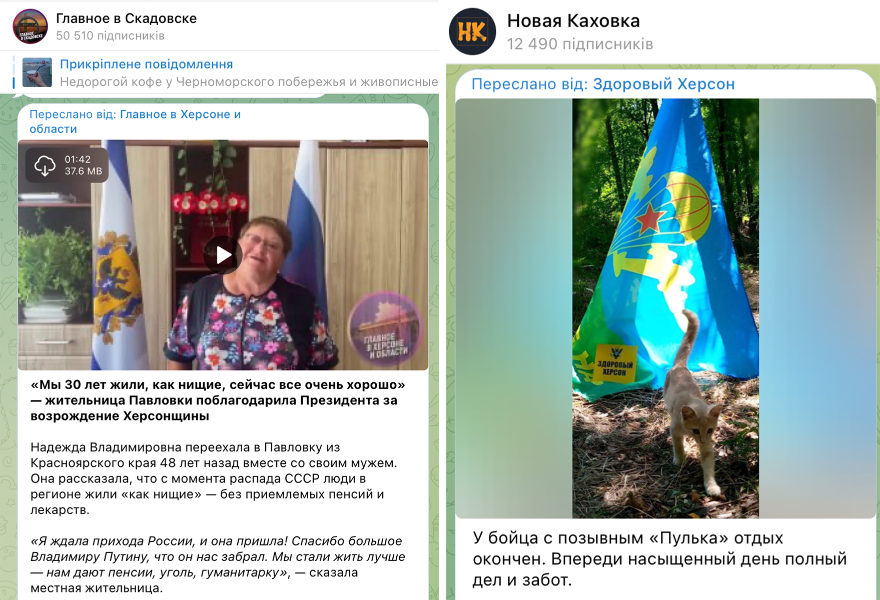 Російська пропаганда створила десятки каналів у Телеграм, які пишуть про окуповану та звільнену Херсонщину. Канали з назвою “Херсон”, а також з назвами населених пунктів Херсонської області підтримують меседжі російської пропаганди за допомогою репостів.