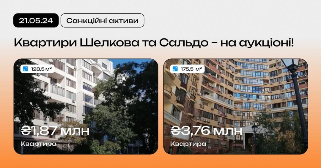 «Квартири Михайла Шелкова та Володимира Сальдо – на аукціоні! ФДМУ повторно виставив на продаж ці активи російського олігарха і українського колаборанта у системі Prozorro.Продажі», - йдеться в повідомленні.