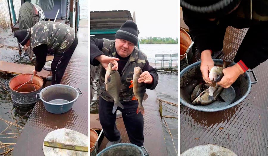 Все, що залишилось від страшних часів життя на острові поруч з росіянами, - одне маленьке відео, на якому чоловік пані Олени Андрій показує свій улов.