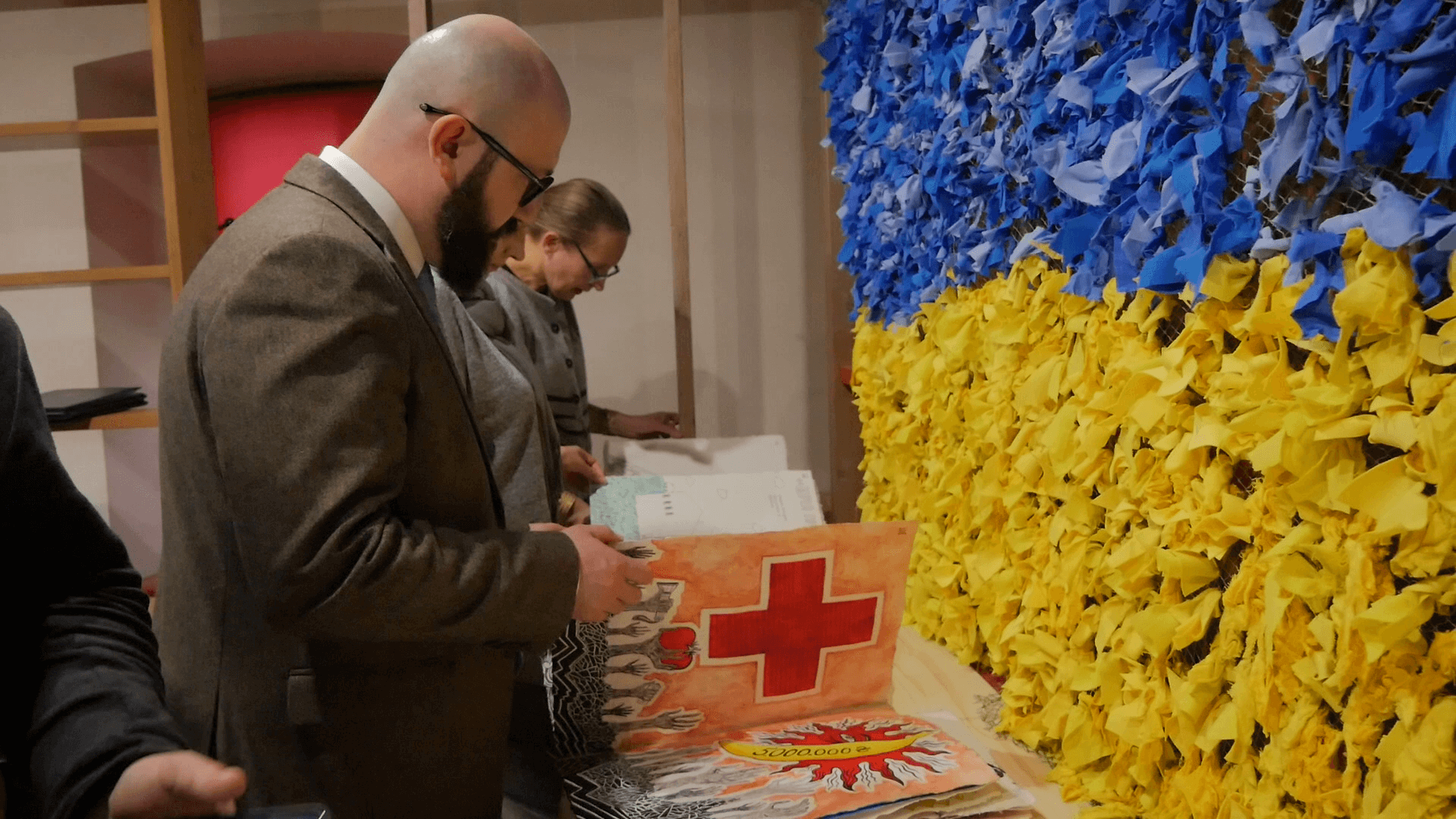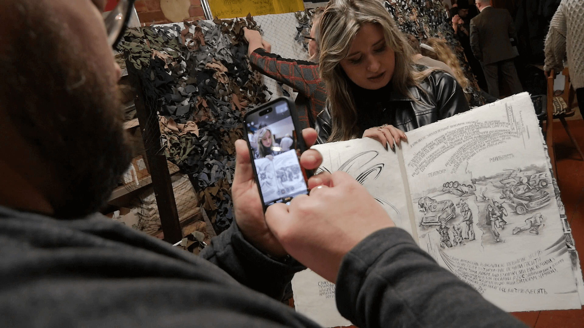 Художниця із захватом розповідає про героїв своєї частини книги. Про бібліотекарку, яка вийшла проти росіян і сказала, що не відкриє їм бібліотеку, як її образ трансформувався в образ богині мудрості, Афіни Паллади, а згодом набув архангельських рис. Про фермера, який у 2022-му під обстрілами засіяв свій пай, у 2023-го його затопило, а у 2024-му році втрату перетворив на свободу і вирішив, що він вільний, бо «росіяни достроково відправили його на пенсію».Загалом, книга чудово склалася, митці залишились задоволені роботою, перші глядачі вражені, тож зараз навіть є ідеї продовження цього проєкту. Але це вже буде зовсім інша історія, а зараз має закінчитися ця.