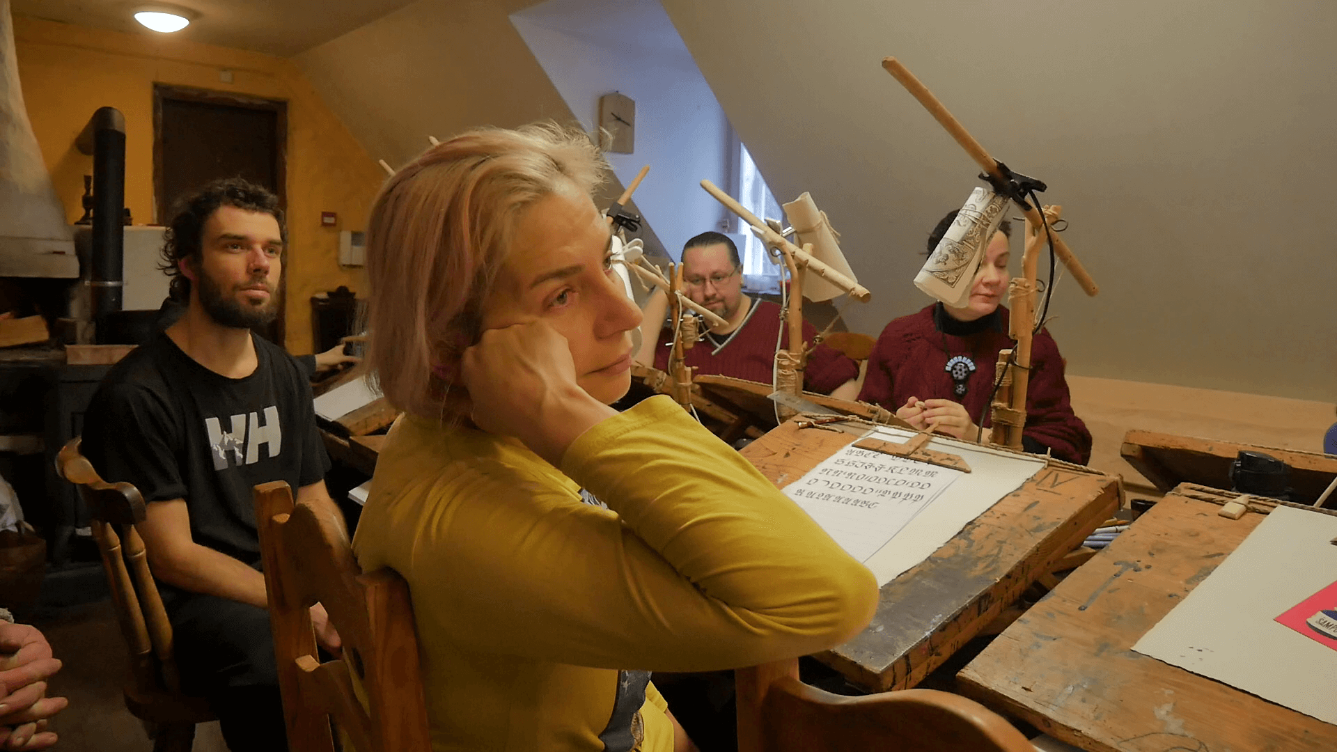 Увага киянки Ольги Верменич прикута до Херсона тому, що понад рік її чоловік служить у Херсоні, тож кожен її ранок починається з перегляду херсонських новин:«Всі історії варті того, щоб їх задокументувати. І зробити з цього книгу, яку будуть читати люди, які не стикалися з цими реаліями, які будуть ще більш переконливі завдяки художній мові, яку використовують художники, які зібралися на цю резиденцію», – вважає каліграфістка.