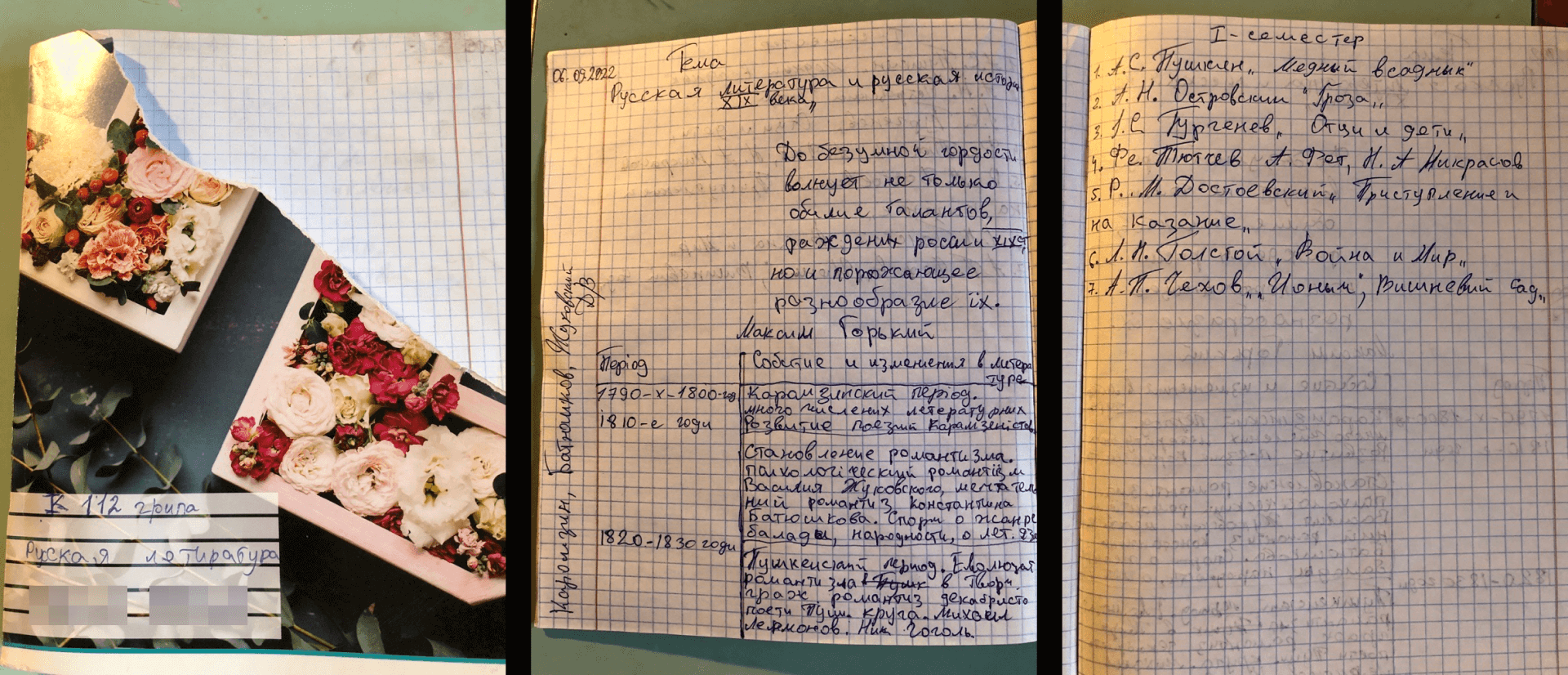 Конспект з російської літератури, який під тортурами примушували вести одного з ув’язнених. Фото: Дмитро ФіонікТут у різних камерах, дійсно, можна натрапити на книжки. Ймовірно, це залишки розграбованої сімейної бібліотеки когось із в‘язнів. Одного з наглядачів, що займався “просвітницькою діяльністю”, мешканці підвалу позаочі називали “Книжний”.