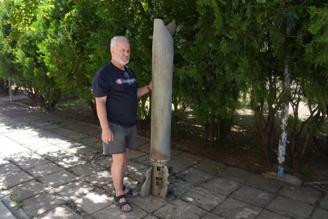 "Ця ракета касетна і касети розліталися протягом того часу, як вона рухалась. До нас прилетіла ця болванка велика — вона пуста. Пробила товщу асфальту десь сантиметрів на 15-20 і ввійшла в землю. Тільки хвостовик було трішечки видно і все. Якщо б вона поцілила, наприклад, не в асфальт, не в землю, а у приміщення, то було б воно трохи зруйноване. Якби вона була начинена, як правило — тут 60-80 кілограмів тротилу, то від нас би нічого не залишилося і будинків навколо теж, я так думаю, не було б", — розповів Володимир Сагайдак.