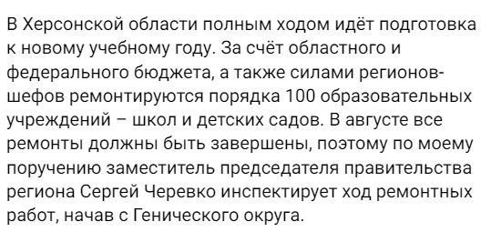 В даному дописі важливим є не стільки фактаж про кількість закладів, які окупаційна влада обіцяє відремонтувати, скільки те, що Сальдо прагне залишити за лаштунками реляцій про «відновлення та покращення».